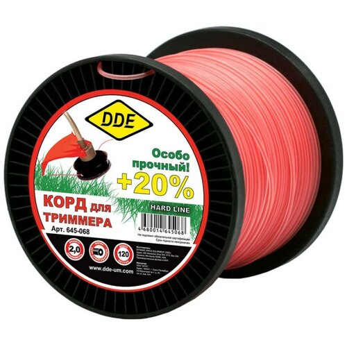 Корд триммерный на катушке DDE "Hard line" (круг армированный) 2,0 мм х 120 м, серый/красный