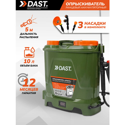 Опрыскиватель аккумуляторный садовый ранцевый DAST 10 л, 12 В, 8 Ач, 3 насадки, DORA-10L2-12V