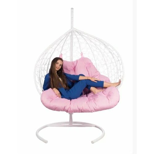 Двойное подвесное кресло "gemini" promo White розовая подушка