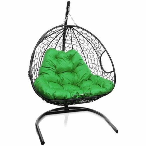 Подвесное кресло кокон двухместное M-GROUP для двоих с ротангом чёрное+зелёная подушка