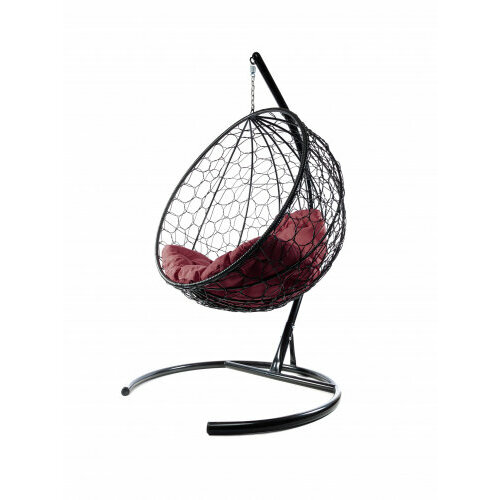 Подвесное кресло черное Для двоих люкс бордовая подушка