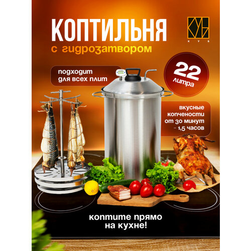 Коптильня Домашняя CUBE (КУБ) из нержавеющей стали с гидрозамком для горячего копчения, 22 л