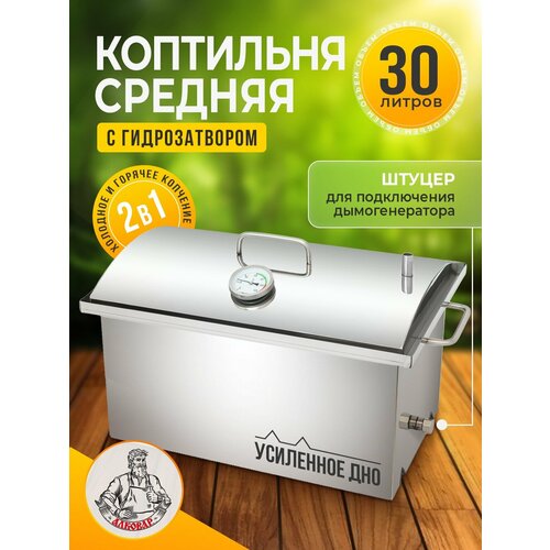 Коптильня горячего и холодного копчения с гидрозатвором и термометром, 30 литров