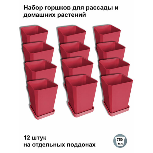 Горшки для рассады и цветов, 12 штук на отдельных поддонах, французская роза