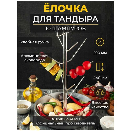 Шампурница Тритон для тандыра, 10 шампуров, алюминиевая сковорода D34.5 (Скиф, Аладин mini, Атаман, Александр и др.)