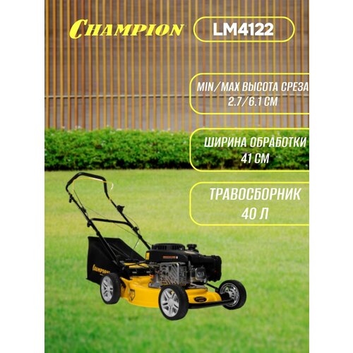 Газонокосилка CHAMPION LM4122 (2,2кВт 410мм 40л 27-61мм 1рычаг/6, 23кг)
