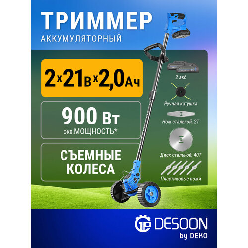 Триммер DEKO DSTR21, колесный, аккумуляторный, 2 АКБ, LiIon, ширина скашивания 15см
