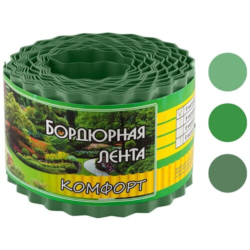 Бордюр садовый PARK для газонов, грядок Комфорт высота 10см длина 9м/зеленый 256027 1 шт.