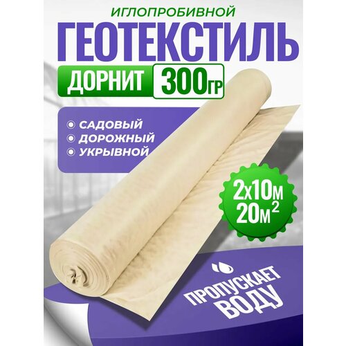 Геотекстиль "Дорнит" 300, для грядок и дорожек, водопроницаемый, плотность 300 г/м², 10х2 м