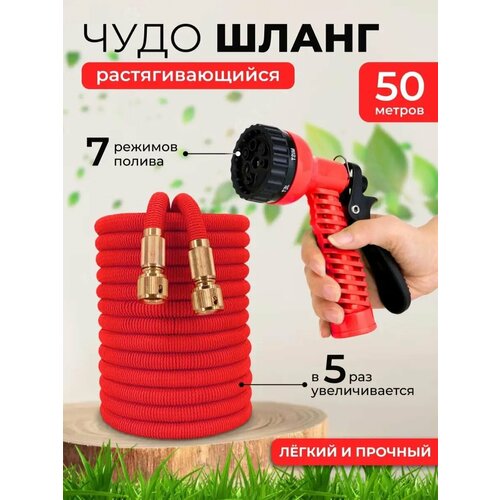 Шланг садовый поливочный растягивающийся 50метров, с фитингами и распылителем