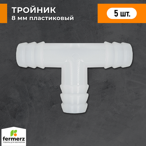 Тройник 8мм пластиковый Т образный 5 шт белый
