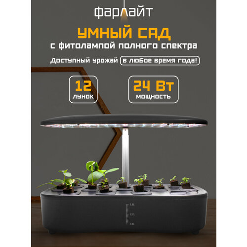 Гидропонная система Фарлайт "Умный сад", с таймером, 12 ячеек, 24Вт, 3 спектра, дневной, теплый и холодный свет