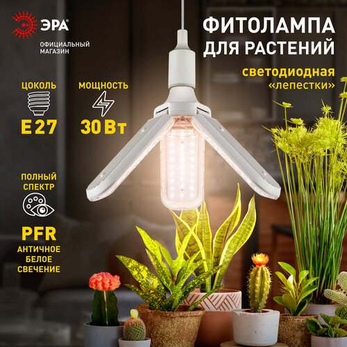 Фитолампа для растений светодиодная ЭРА GREEN LINE ФИТО-30W-PFR-E27-GR 3-х лепестковая полного спектра 30 Вт Е27