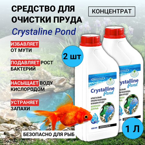 Prestige Aqua Средство для очистки воды в пруду от мути и загрязнений Crystaline Pond концентрат 1 л 2 шт
