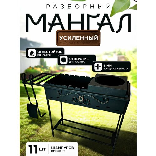 Мангал разборный, с подставкой для казана, 11 пазов для шампуров