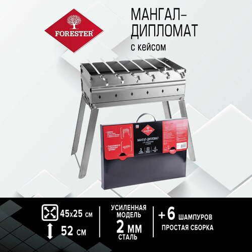 Мангал FORESTER со складными ножками с 6 шампурами толщина 2 мм 45х25 см, в кейсе 100061787306