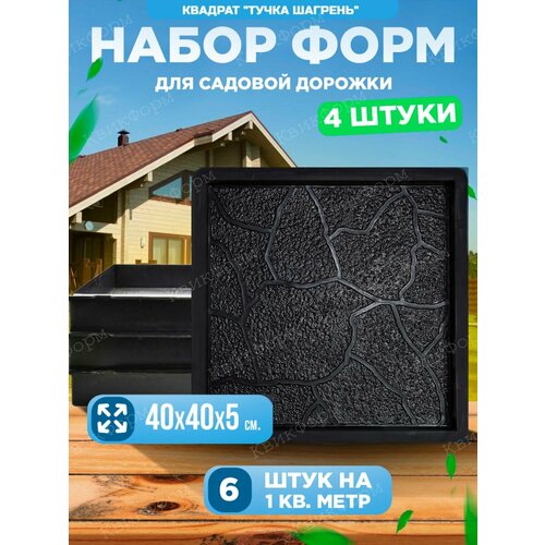 Формы для тротуарной плитки Квадрат Тучка шагрень (40х40х5.0 см.), набор из 4 штук