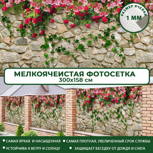 Фотосетка Мечта для забора беседки террасы 300x158 см, "Цветочная стена" , фотофасад для дома дачи сада