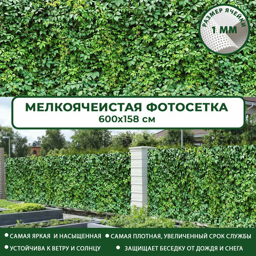 Фотосетка Мечта для забора беседки террасы 600x158 см, "Зеленые листья" , фотофасад для дома дачи сада