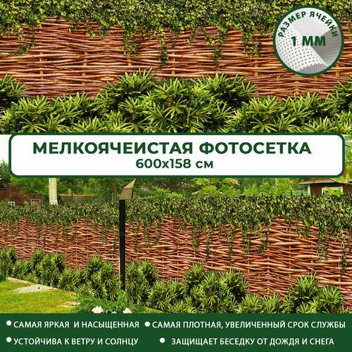 Фотосетка Мечта для забора беседки террасы 600x158 см, "Плетёный забор с зарослями" , фотофасад для дома дачи сада