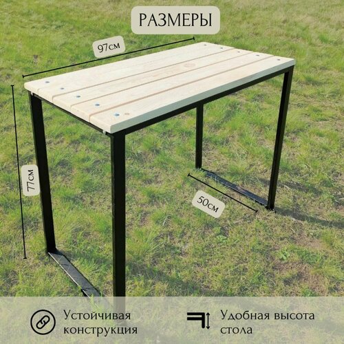 Стол садовый уличный металлический в стиле ЛОФТ, столешница из натурального дерева, обеденный, для дома, для дачи.