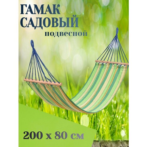 Гамак для дачи тканевый с деревянной перекладиной размер 200*80 см