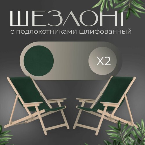 Кресло-шезлонг с подлокотниками для дома, для дачи, складной с зеленой тканью без шлифовки, комплект 2 шт
