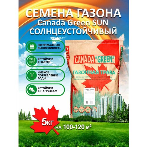 Газонная трава семена Канада Грин Солнечный SUN 5 кг/ райграс, мятлик, овсяница семена
