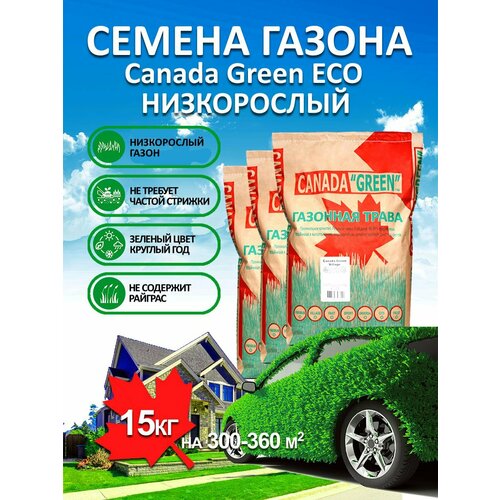 Газонная трава семена Канада Грин Низкорослый ECO 15 кг/ мятлик, овсяница семена
