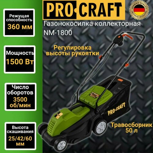 Электрическая газонокосилка ProCraft NM1800, 1500 Вт, 36 см