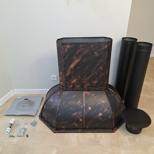 Комплект вытяжки Д-1260/ Ш-870/ В500/Высота с кожухом 1060/ D-200 гриль, тандыр, мангал медная патина