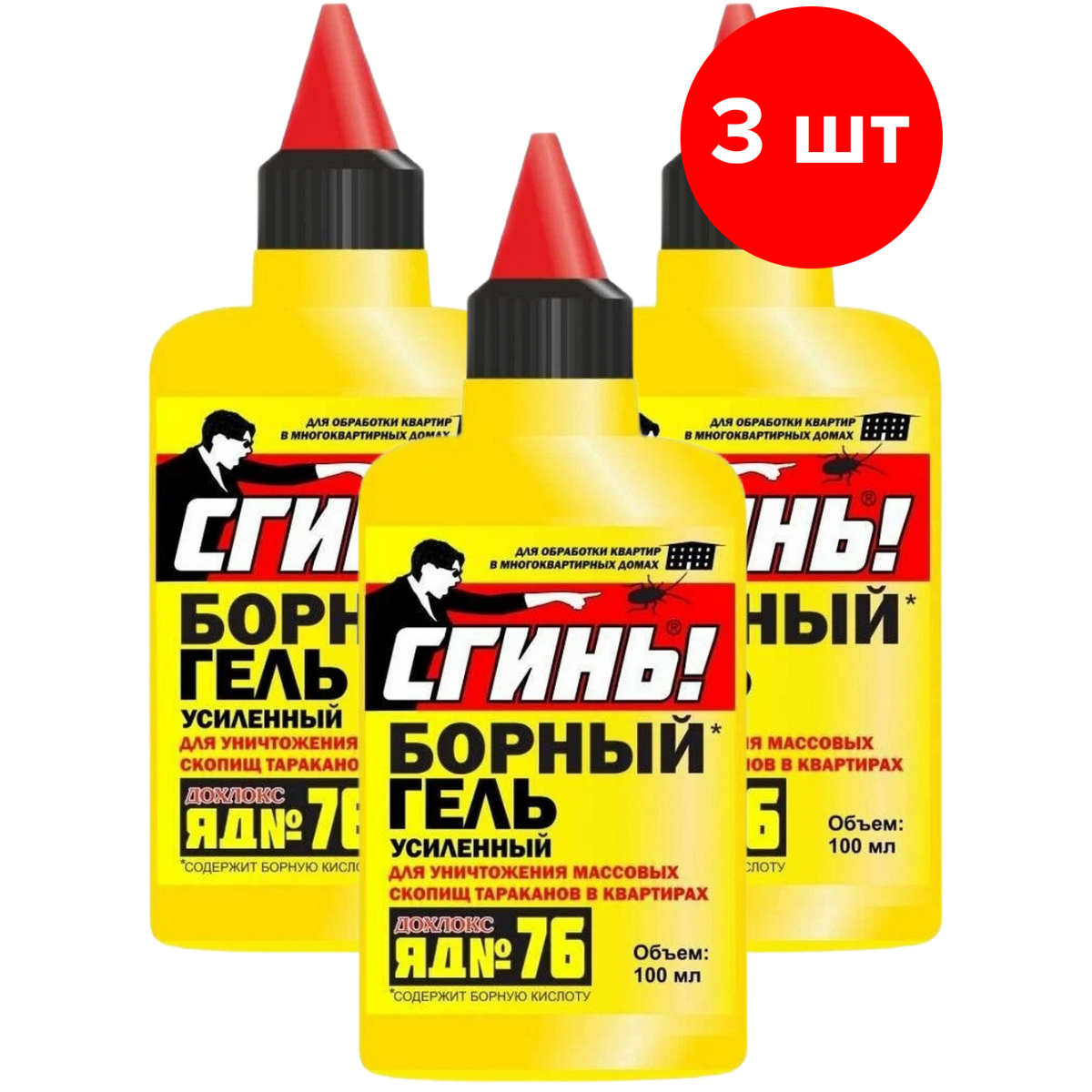 Борный гель от тараканов, СГИНЬ!, усиленный №76, 4640259901947, 3шт по 100мл, 300мл 600013519491