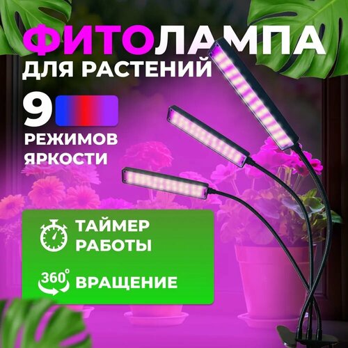 Фитолампа для растений, мощность 60Вт, пластик, 3 ветки усиленной мощности