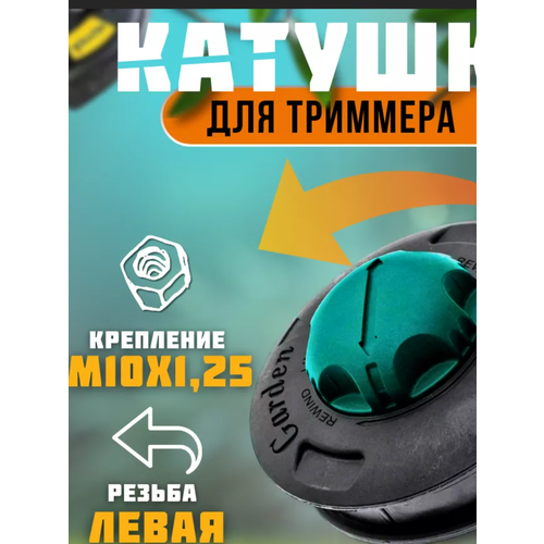 Катушка для триммера GARDEN Зелёная полуавтомат, М10х1.25 левая резьба (железный пятак)
