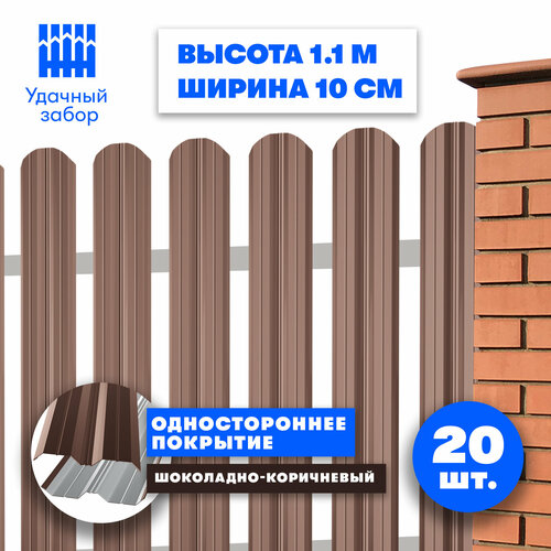 Штакетник металлический Классик (односторонний окрас, цвет шоколадно-коричневый, высота 1.1 м, ширина планки 100 мм, 20 шт, саморезы в комплекте)