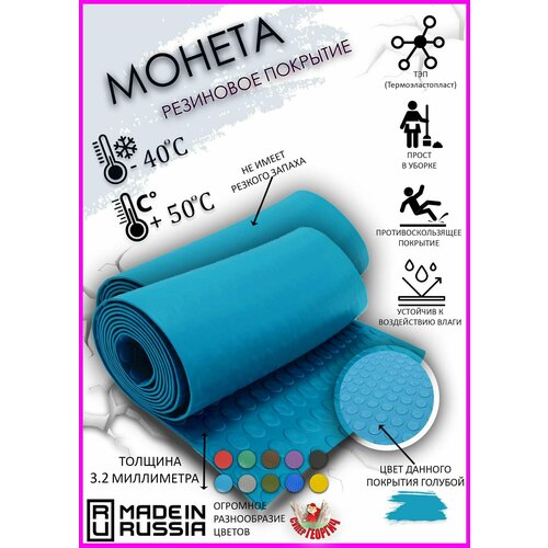 Рулонное покрытие Голубой Монета размер 1,5х4
