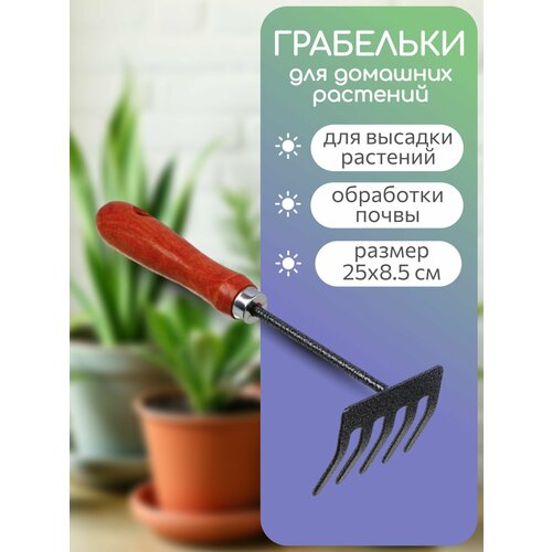 Грабельки садовые 25х8.5см INBLOOM, с деревянным черенком/ рыхлитель садовый