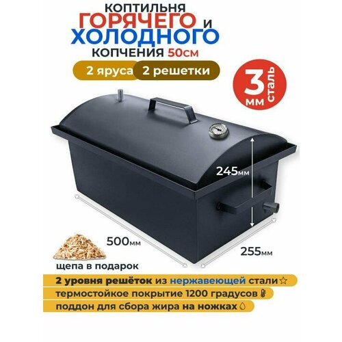 Коптильня горячего и холодного копчения из стали 3мм двухъярусная с гидрозатвором