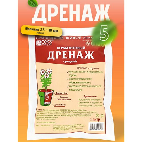 Дренаж для комнатных растений, цветов керамзитовый 2 - 10мм 5 шт по 1л