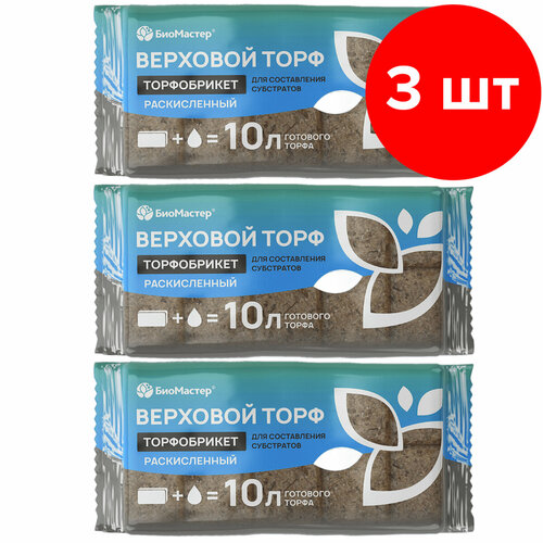 Торфобрикет БиоМастер Верховой торф раскисленный, 3 шт по 10 л (30 л)