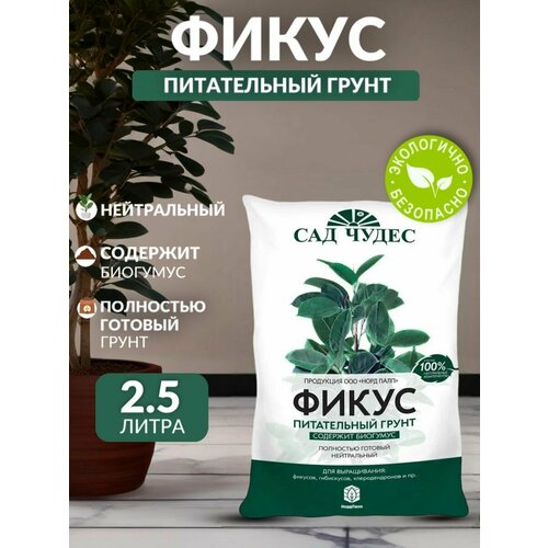 Земля, грунт питательный фикус Сад Чудес 2,5 л. Земля для комнатных цветов: пальм, драцен, гибискусов, клеродендронов