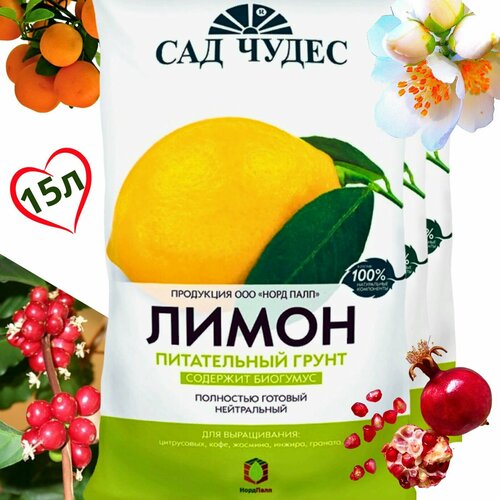 Грунт Сад чудес Лимон 2.5л 3шт с биогумусом, перлитом, минералами для цитрусовых, кофе, жасмина, инжира