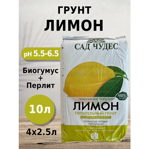 Грунт Сад чудес Лимон 2.5л 4шт с биогумусом, перлитом, минералами для цитрусовых, кофе, жасмина, инжира