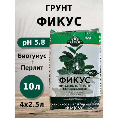 Грунт Сад чудес Фикус 2.5л 4шт с биогумусом, перлитом, минералами для гибискусов, клеродендронов, фикусов