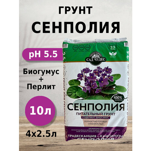 Грунт Сад чудес Сенполия 2.5л 4шт с биогумусом, перлитом, минералами для сенполий, традесканций, кампанул
