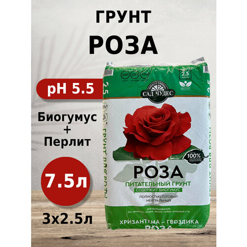 Грунт Сад чудес Роза 2.5л 3шт с биогумусом, перлитом, минералами для роз, хризантем, гвоздик