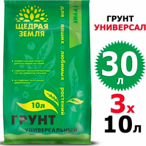 30 л Грунт универсальный 10 л х 3 шт Щедрая земля