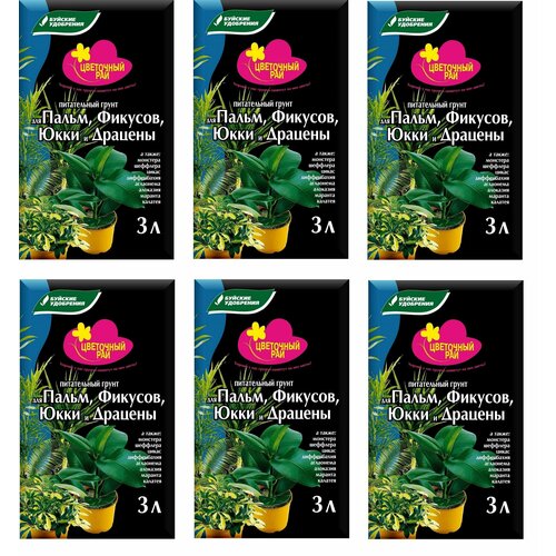 Грунт питательный "Цветочный рай" для пальм, фикусов, юкки и драцены 18 л (6 шт по 3 л)