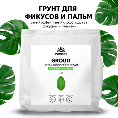Грунт (земля) для фикусов и пальм Пуршат. С торфом и биогумусом для активного роста и восстановления растений (Purshat) 1 л