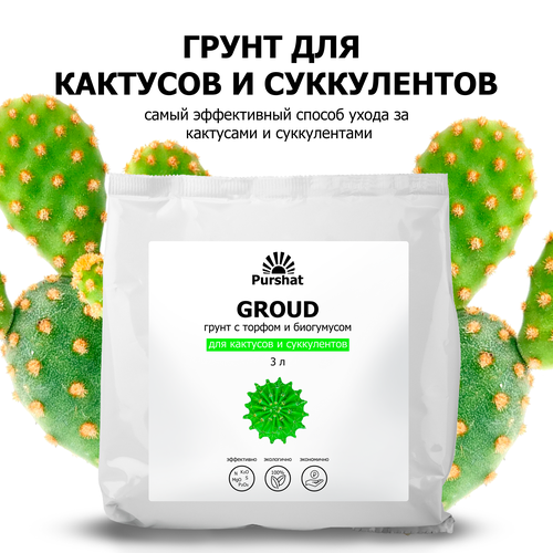 Грунт (земля) для кактусов и суккулентов Пуршат. Почвогрунт с торфом и биогумусом для удобрения (Purshat) 3 л